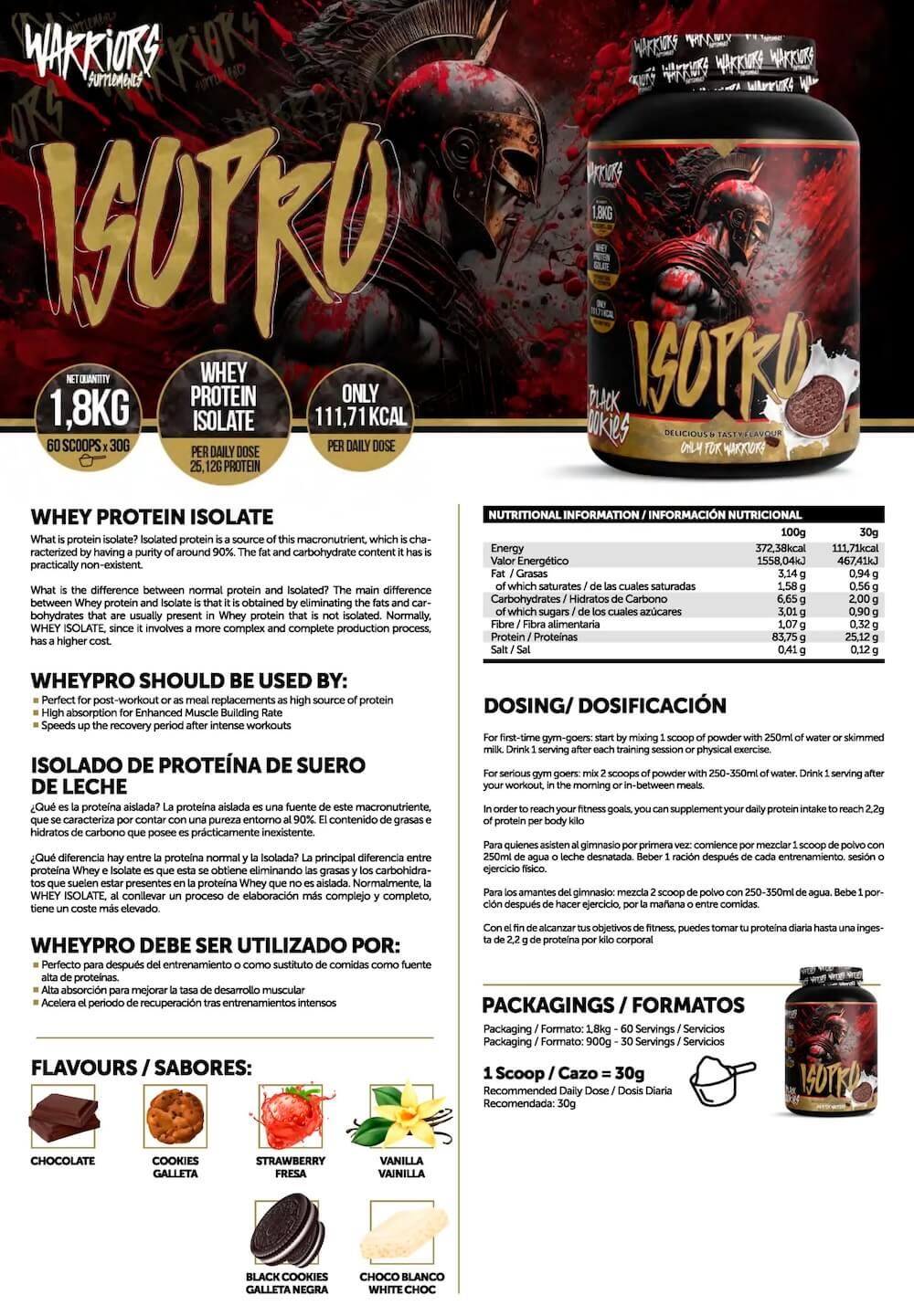 ISO PRO es una fuente de proteína aislada, un macronutriente que se caracteriza por tener una pureza de alrededor del 90 %. El contenido de grasas y carbohidratos que contiene es prácticamente inexistente. ¿Cuál es la diferencia entre una proteína normal y una aislada? La principal diferencia es que la proteína aislada se obtiene eliminando las grasas y los carbohidratos que normalmente están presentes en la proteína de suero convencional.